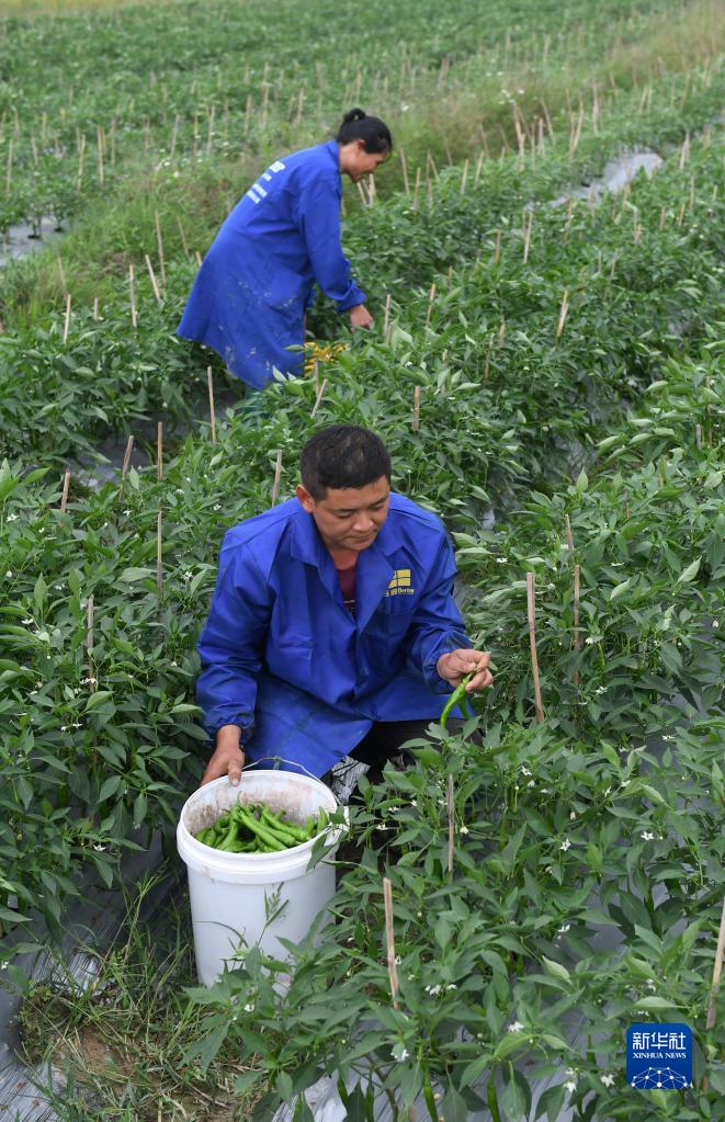 11月4日,在廣西田東縣平馬鎮(zhèn)百林村,村民在采摘辣椒準備上市。