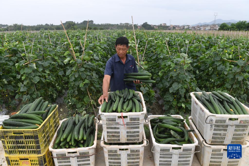 11月4日,在廣西田東縣平馬鎮(zhèn)百林村,村民在采摘黃瓜準備上市。