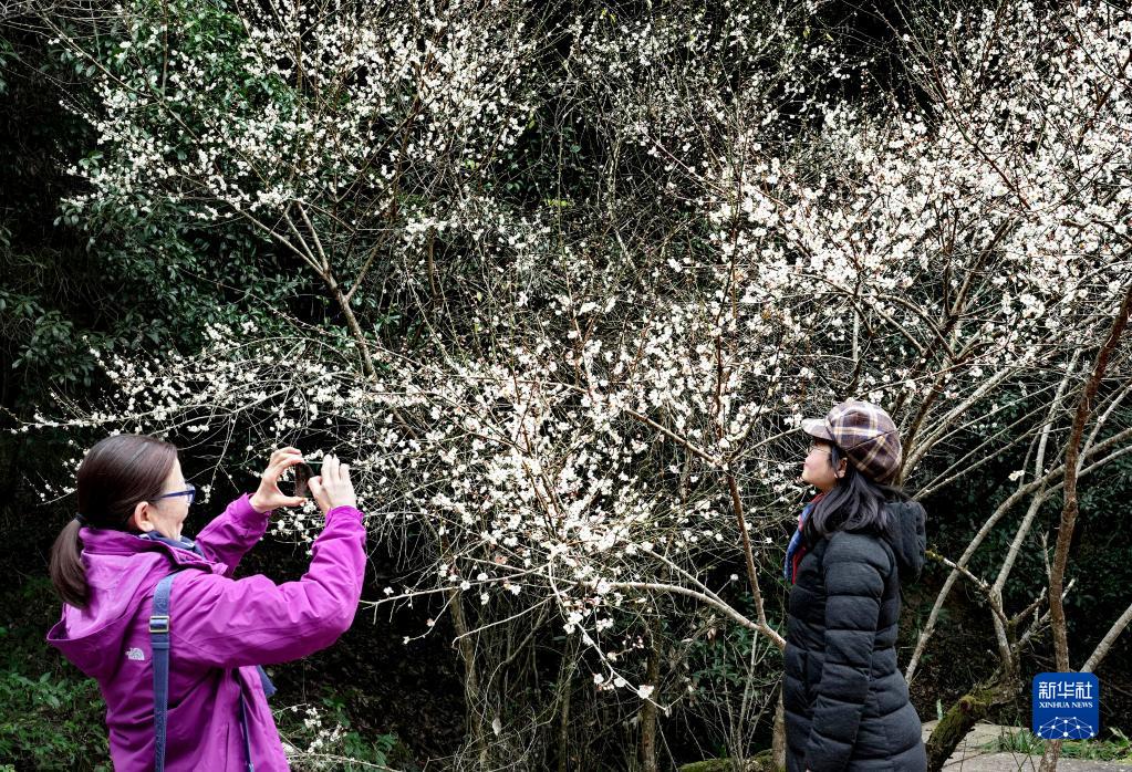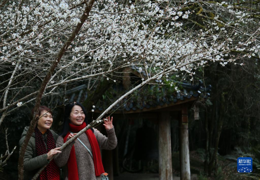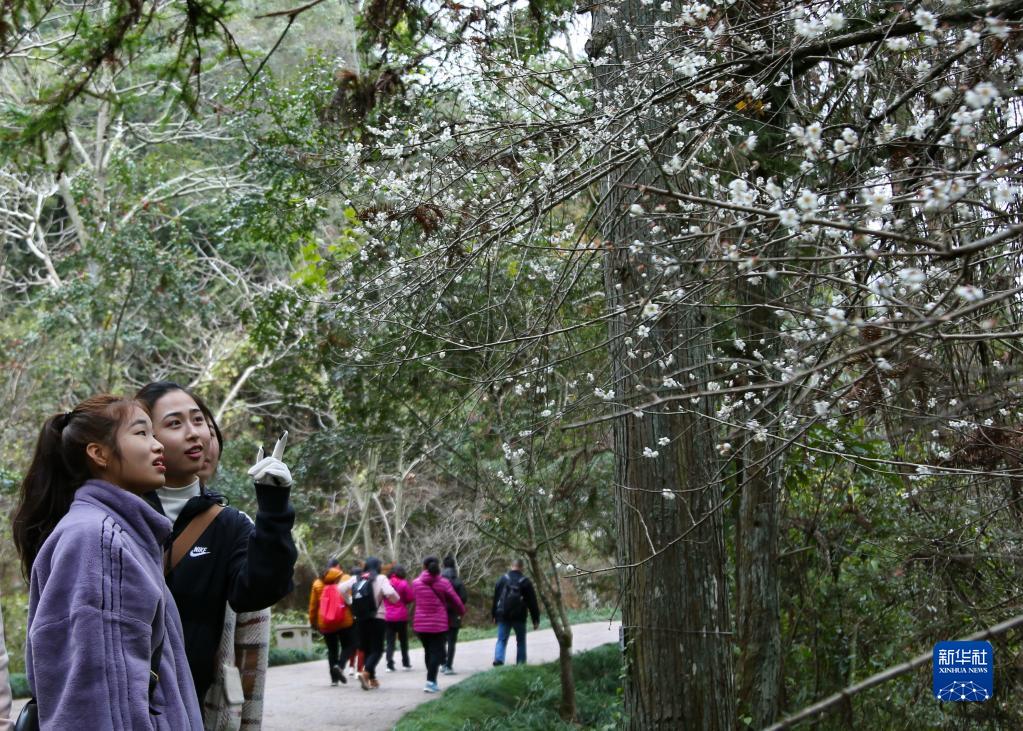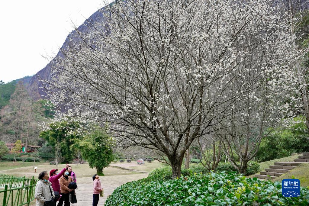 冬日時節(jié),福建武夷山國家公園內(nèi)的梅花相繼綻放,吸引眾多游人前來觀賞。