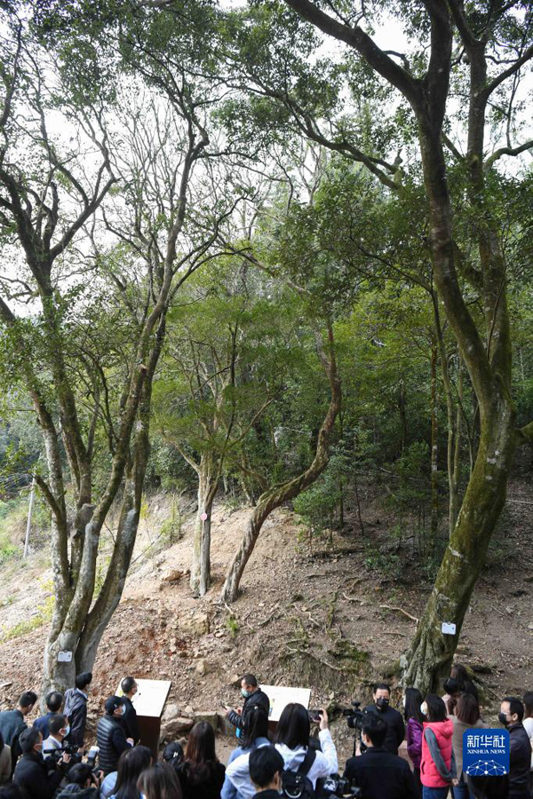 在位于閩粵交界處的廣東梅州大埔縣伯公凹,參觀者在百歲古樹下聽講解員介紹紅色交通線歷史(1月9日攝)。