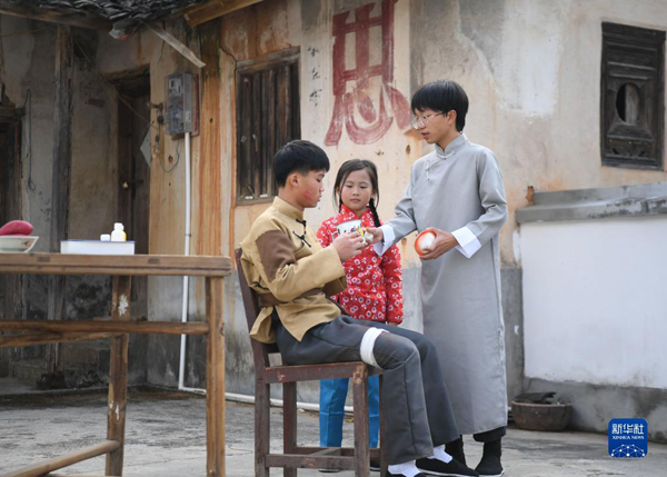 在廣東梅州大埔縣青溪鎮(zhèn)的紅色遺址棣萼樓,當(dāng)?shù)貙W(xué)生參與沉浸式研學(xué)活動(dòng),演繹地下交通員的故事(1月9日攝)。