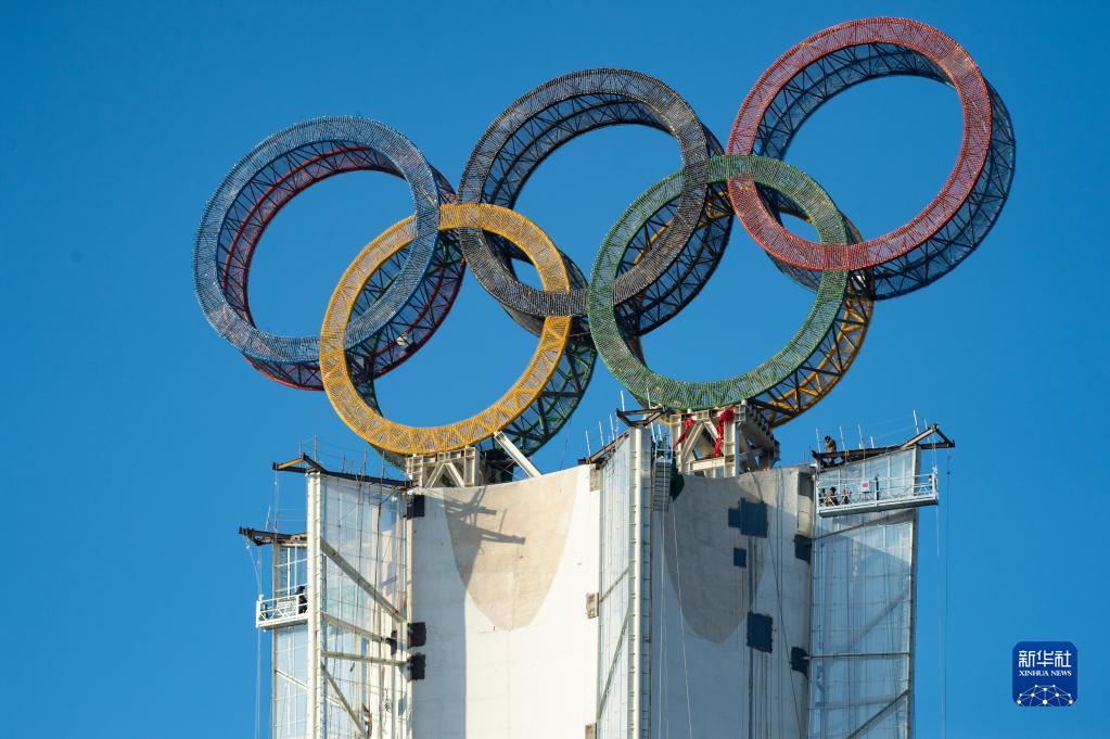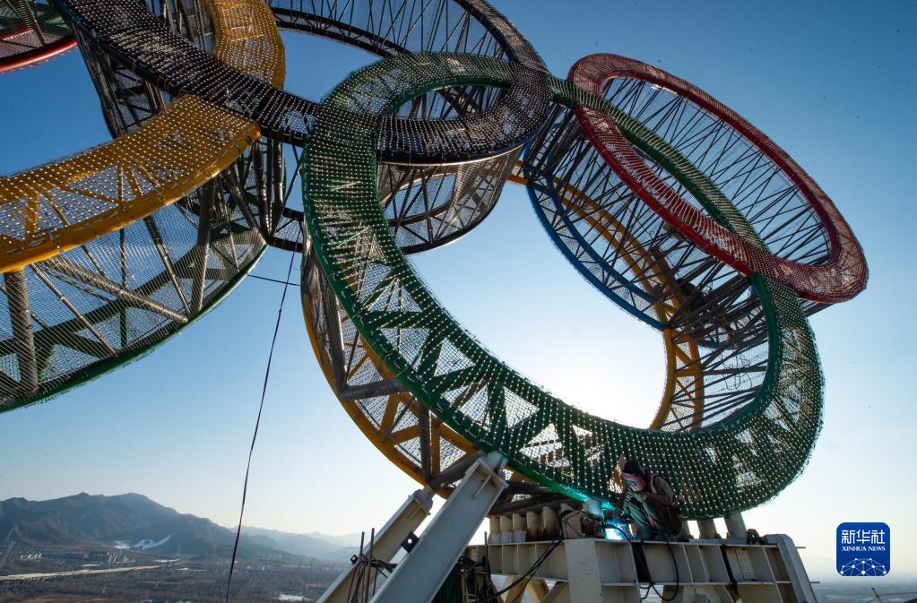 近日,位于北京冬奧會(huì)延慶賽區(qū)的“海陀塔”上的奧運(yùn)五環(huán)結(jié)構(gòu)吊裝作業(yè)完成,進(jìn)入工程收尾階段。塔頂設(shè)置奧運(yùn)五環(huán)標(biāo)志,表面安裝了共計(jì)7萬余個(gè)白色點(diǎn)光源,塔身加裝飄帶形裝飾。
