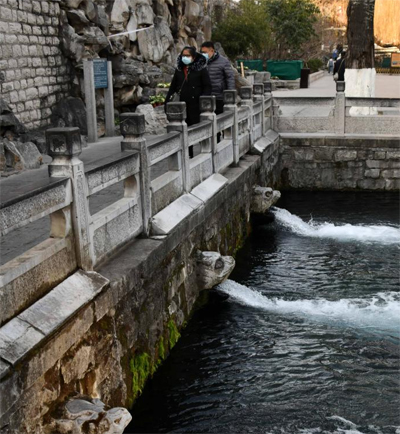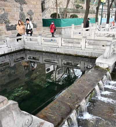 1月2日,游客在觀賞濟南市區(qū)的琵琶泉。