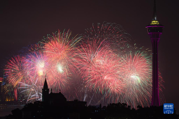 2月7日晚,澳門特區(qū)旅游局在旅游塔對開海面舉行新春煙花表演。新華社記者 張金加 攝