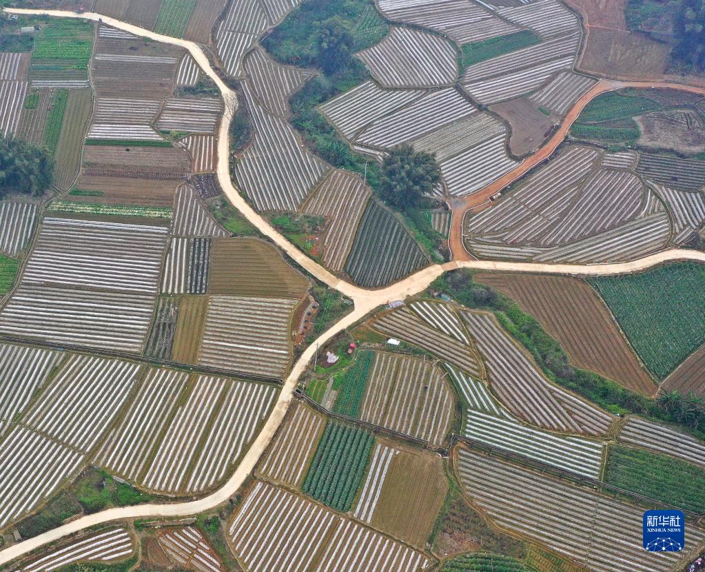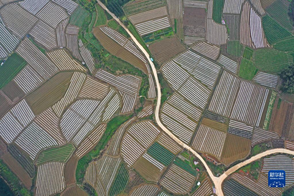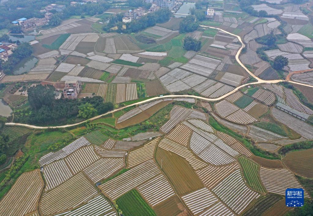 這是廣西南寧市興寧區(qū)五塘鎮(zhèn)田園春色(2月10日攝,無人機(jī)照片)。