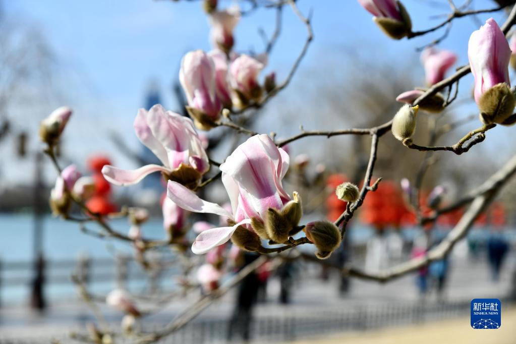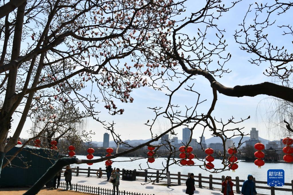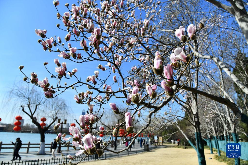 近日,山東省濟南市天氣晴好氣溫回升,大明湖景區(qū)內玉蘭花陸續(xù)綻放,給城市帶來了春天的氣息。