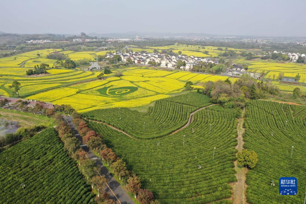 近日,江蘇省南京市高淳區(qū)椏溪國際慢城的萬畝油菜花進(jìn)入盛花期。金色的花海與民居、茶園相映成趣,構(gòu)成美麗的春日畫卷。
