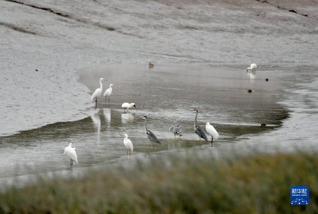 鳥兒在閩江河口濕地棲息(3月29日攝)。