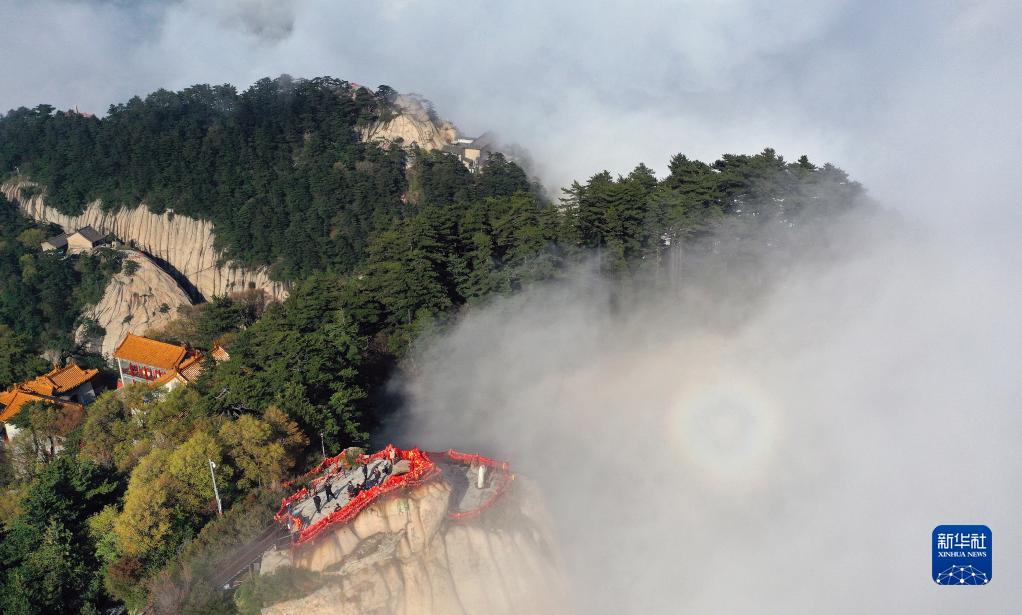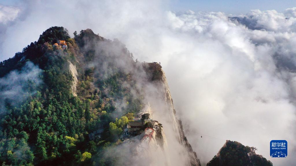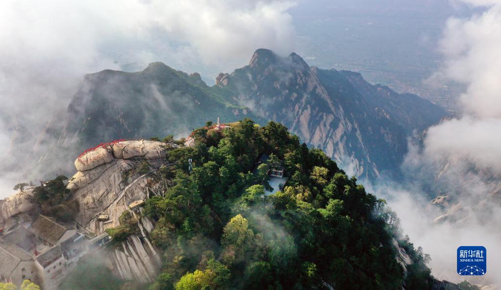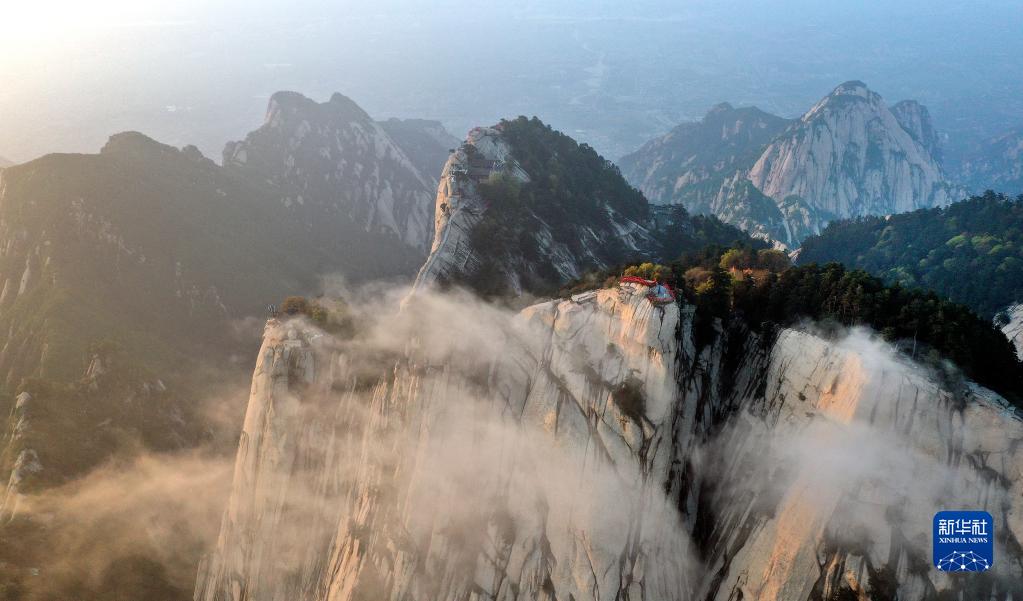 云霧中的華山南峰(4月28日攝,無人機照片)。