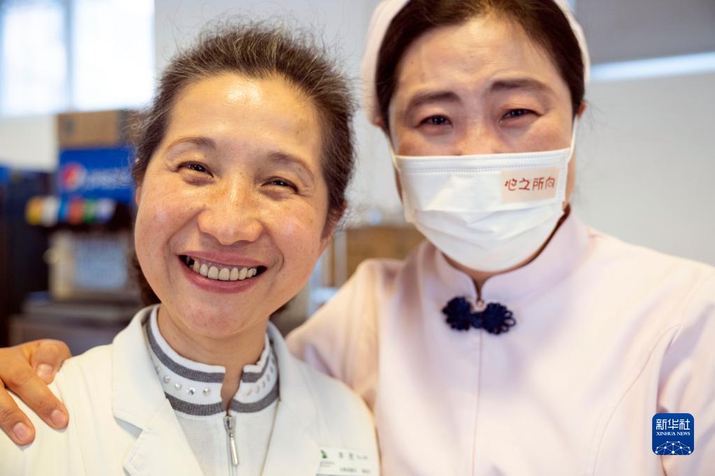 5月11日,在北京按摩醫(yī)院舉行的國(guó)際護(hù)士節(jié)慶?;顒?dòng)上,工作15年的護(hù)士鄭君霞(右)哭著與當(dāng)年剛工作就帶著自己的護(hù)士李欣老師合影留念。