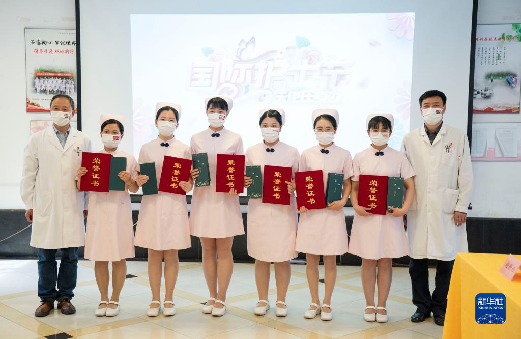 5月11日,在北京按摩醫(yī)院舉行的國(guó)際護(hù)士節(jié)慶?;顒?dòng)上,獲得“優(yōu)秀服務(wù)之星”稱號(hào)的護(hù)士領(lǐng)取獎(jiǎng)狀。