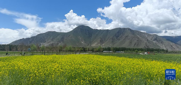 這是拉薩市達(dá)孜區(qū)巴嘎雪濕地(6月26日攝,手機(jī)照片)。夏日的拉薩河谷,藍(lán)天白云、綠水青山,油菜花和麥浪宛如調(diào)色板,構(gòu)成一幅生機(jī)勃勃的高原景致。新華社記者 沈虹冰 攝