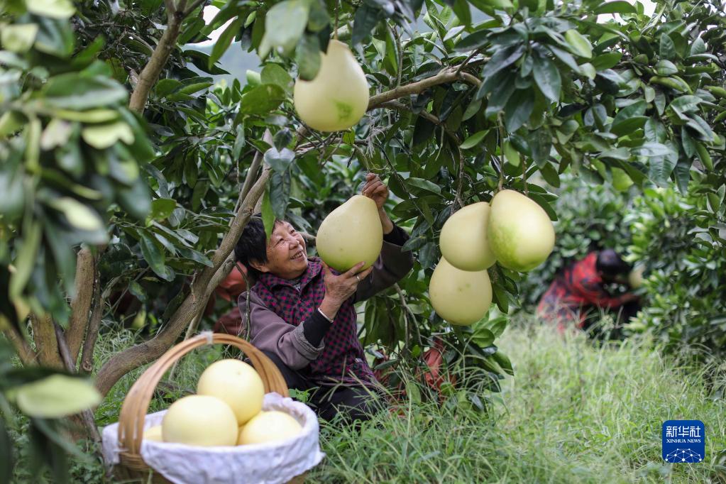 10月10日,果農(nóng)在貴州省遵義市綏陽縣風(fēng)華鎮(zhèn)雙龍村采收柚子。