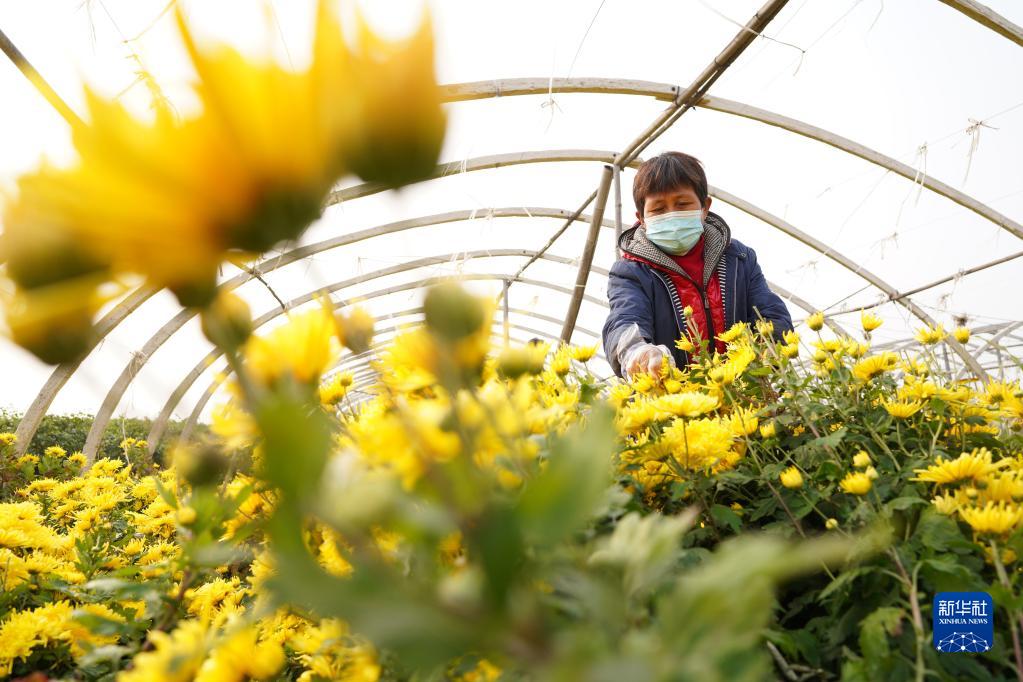 11月7日,河北省邢臺市內(nèi)丘縣吳村農(nóng)民在采摘金絲皇菊。