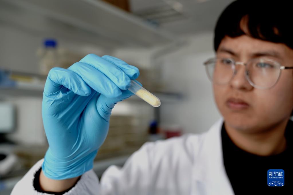 11月16日,中國科學(xué)院分子植物科學(xué)卓越創(chuàng)新中心博士生朱一棟觀察需測定蛋白的玉米粉末樣品。