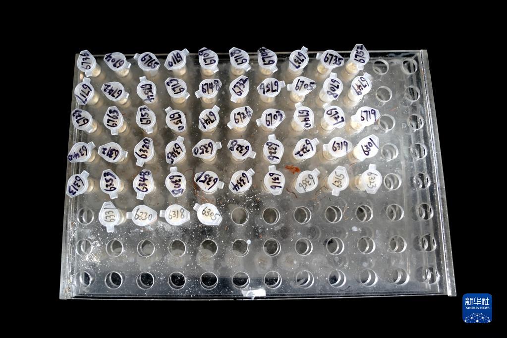 11月16日在中國科學(xué)院分子植物科學(xué)卓越創(chuàng)新中心實(shí)驗(yàn)室拍攝的玉米籽粒粉末樣品。