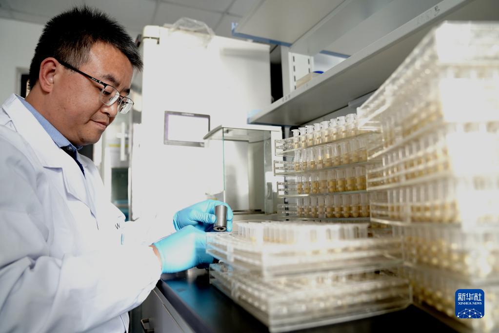 11月16日,中國科學(xué)院分子植物科學(xué)卓越創(chuàng)新中心副研究員王海海在進(jìn)行玉米蛋白測定前的包樣工作。
