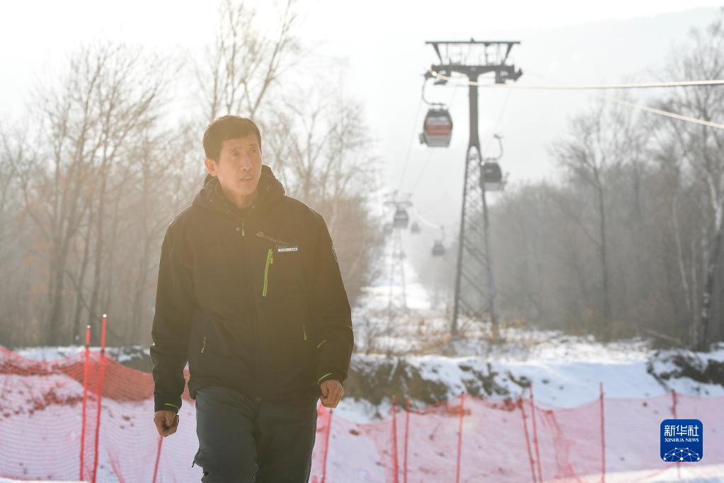 李連國(guó)巡檢索道運(yùn)行情況(11月24日攝)。家住吉林市永吉縣口前鎮(zhèn)的李連國(guó)是一名農(nóng)民。2021年冬天,他應(yīng)聘成為吉林市冰雪試驗(yàn)區(qū)北大湖滑雪度假區(qū)雪場(chǎng)運(yùn)營(yíng)部的一名索道工,負(fù)責(zé)滑雪場(chǎng)索道的運(yùn)行及檢修保養(yǎng)工作,為自己找到了冬日里增收的“新營(yíng)生”。