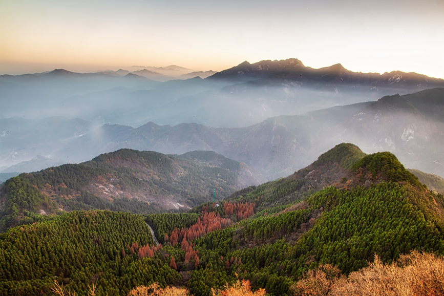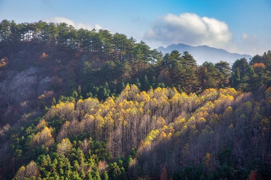 冬日,鄂豫皖三省交界處的河南商城縣黃柏山重巒疊嶂,層林盡染。