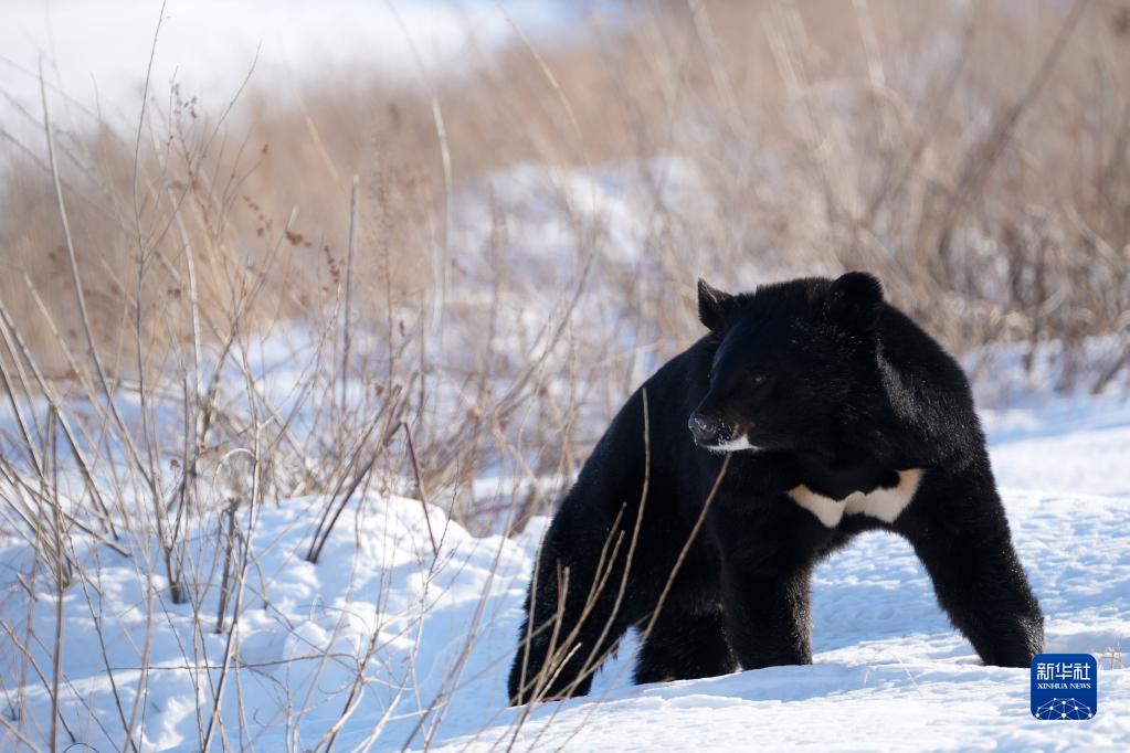 1月10日,黑熊在“探秘野熊園”內(nèi)活動(dòng)。