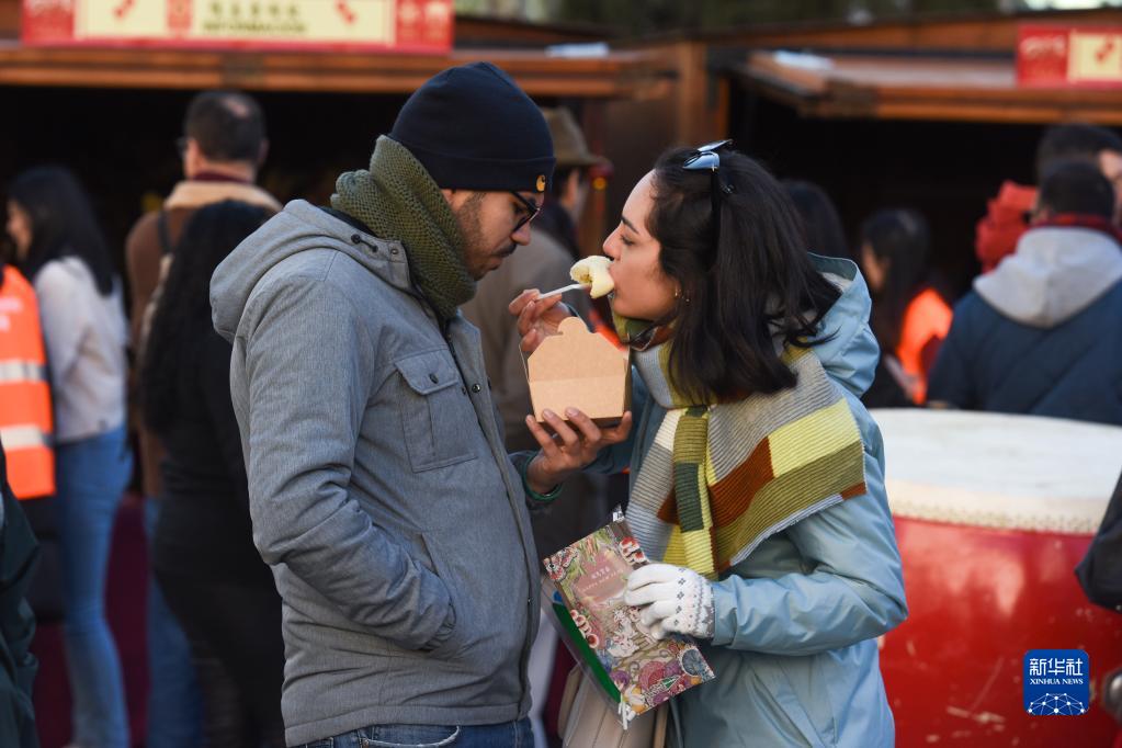 2月4日,在西班牙馬德里,當(dāng)?shù)孛癖妳⒓又袊?guó)廟會(huì)。