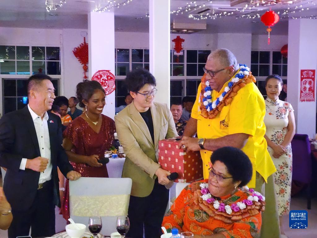 2月5日,斐濟(jì)總統(tǒng)卡托尼韋雷在蘇瓦的歡樂(lè)春節(jié)元宵聯(lián)歡會(huì)上為嘉賓抽獎(jiǎng)。