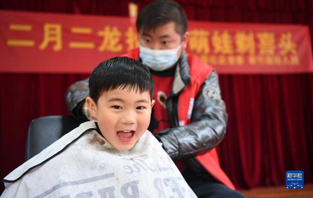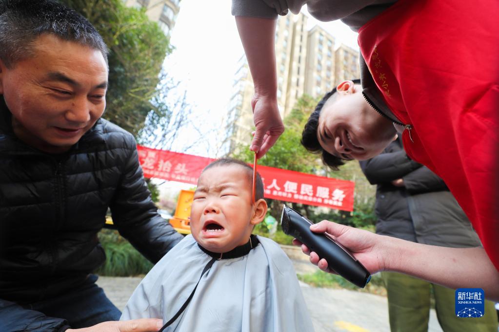 當(dāng)日是農(nóng)歷二月初二,許多家長(zhǎng)帶著孩子“剃龍頭”,祈求孩子在新一年健康成長(zhǎng)。