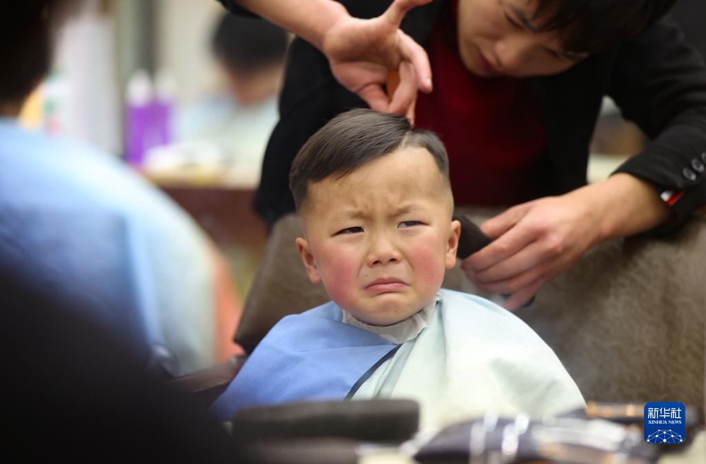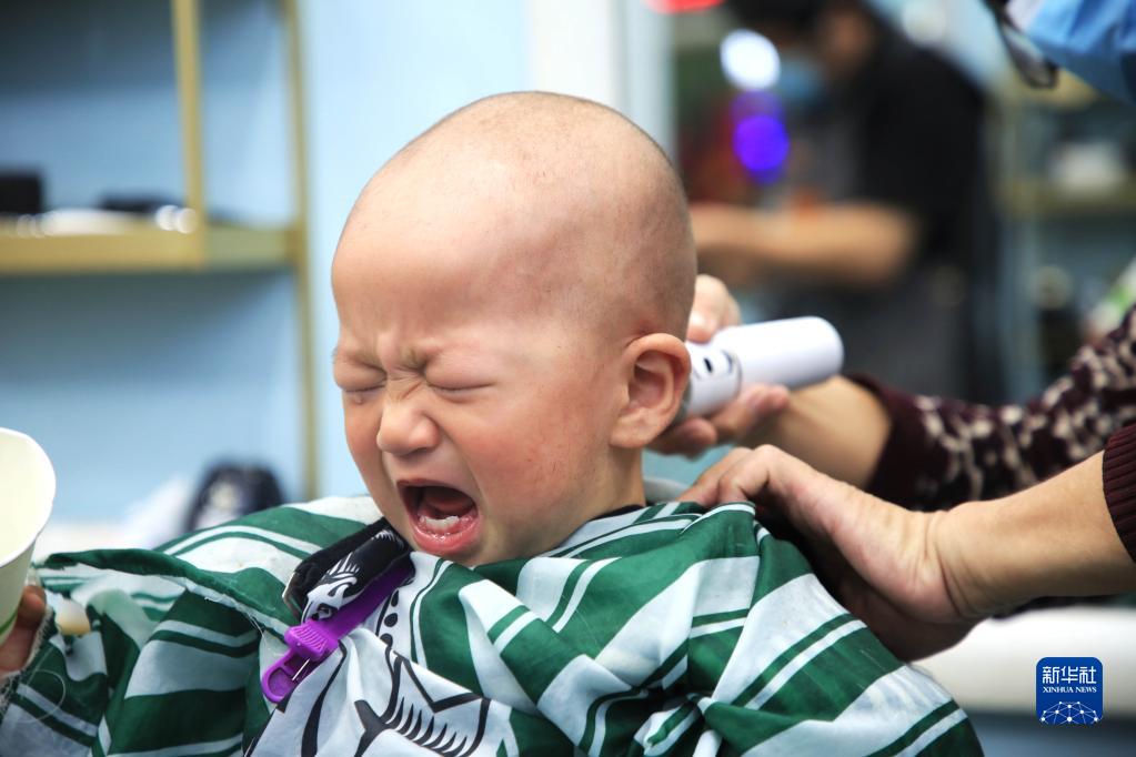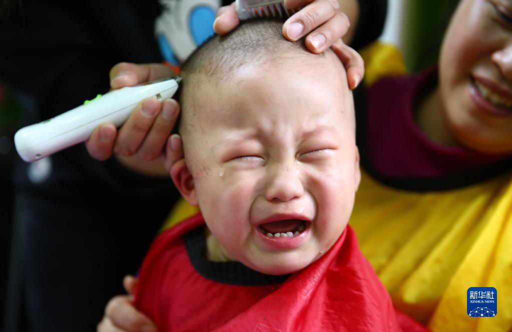 當(dāng)日是農(nóng)歷二月初二,許多家長(zhǎng)帶著孩子“剃龍頭”,祈求孩子在新的一年健康成長(zhǎng)。