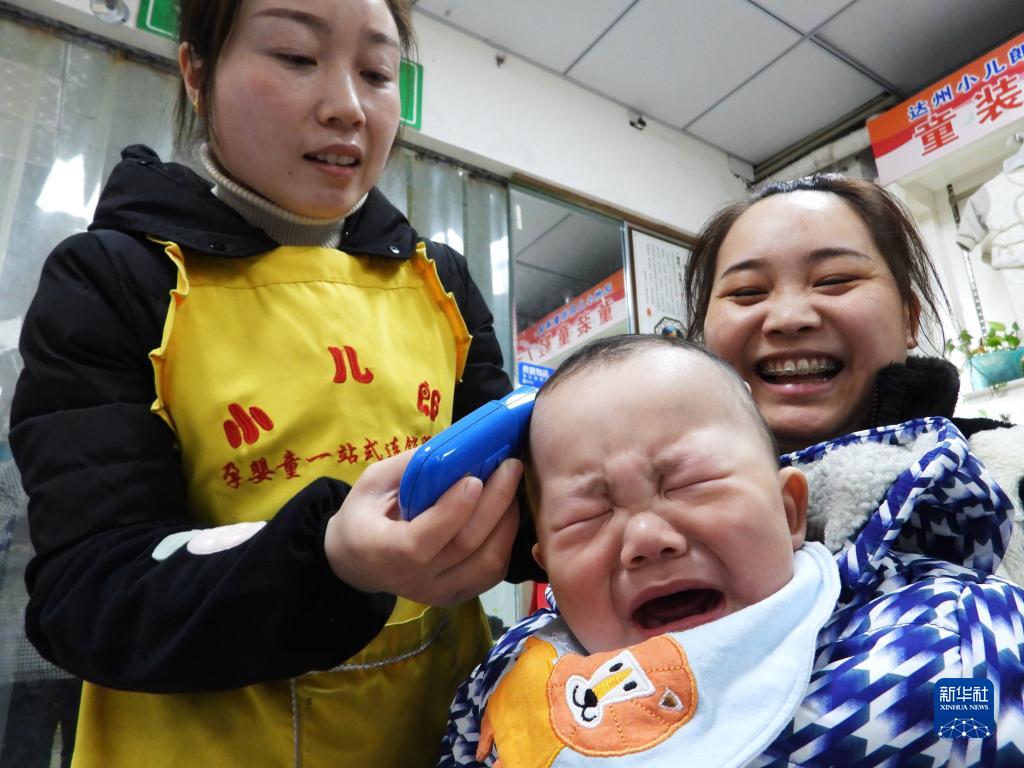 2月21日,一個(gè)小朋友在四川省達(dá)州市通川區(qū)朝陽(yáng)街道一家理發(fā)店理發(fā)。