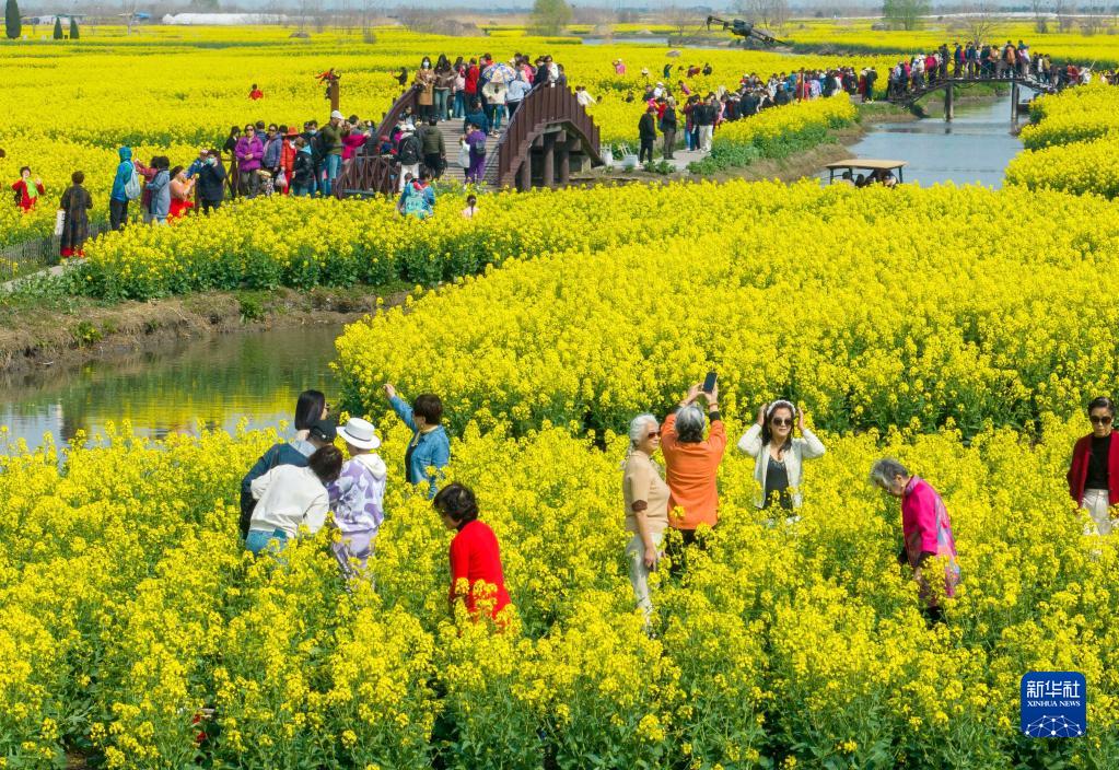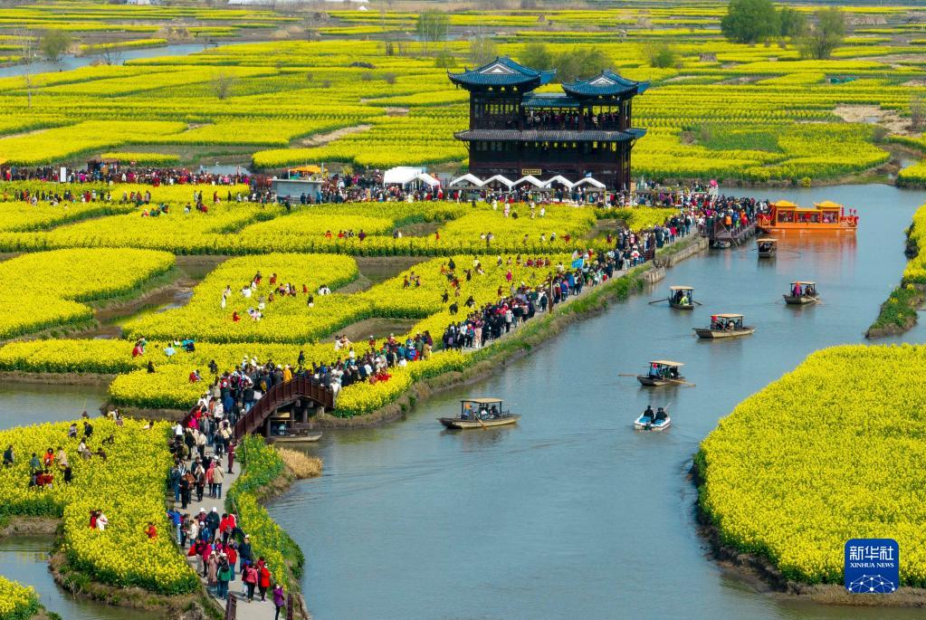 3月19日,游客在江蘇興化千垛菜花風(fēng)景區(qū)游覽(無人機(jī)照片)。