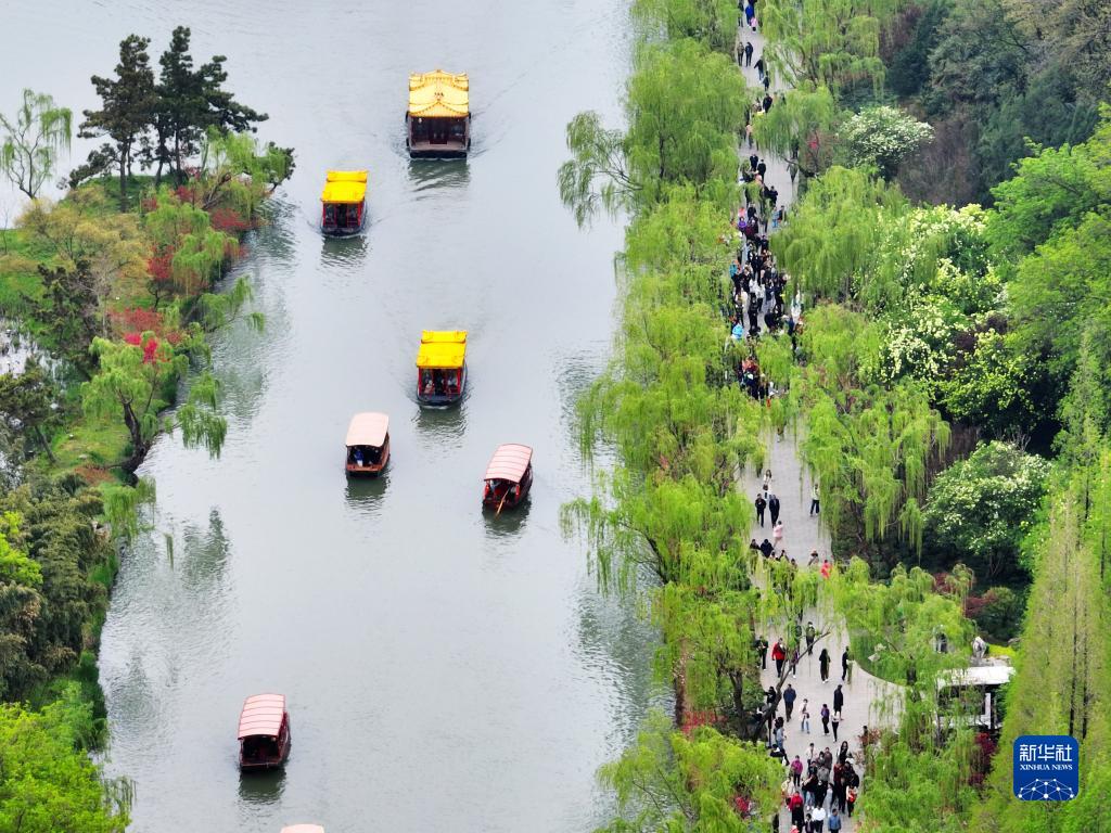 4月5日,游客在江蘇揚(yáng)州瘦西湖風(fēng)景區(qū)游玩(無人機(jī)照片)。