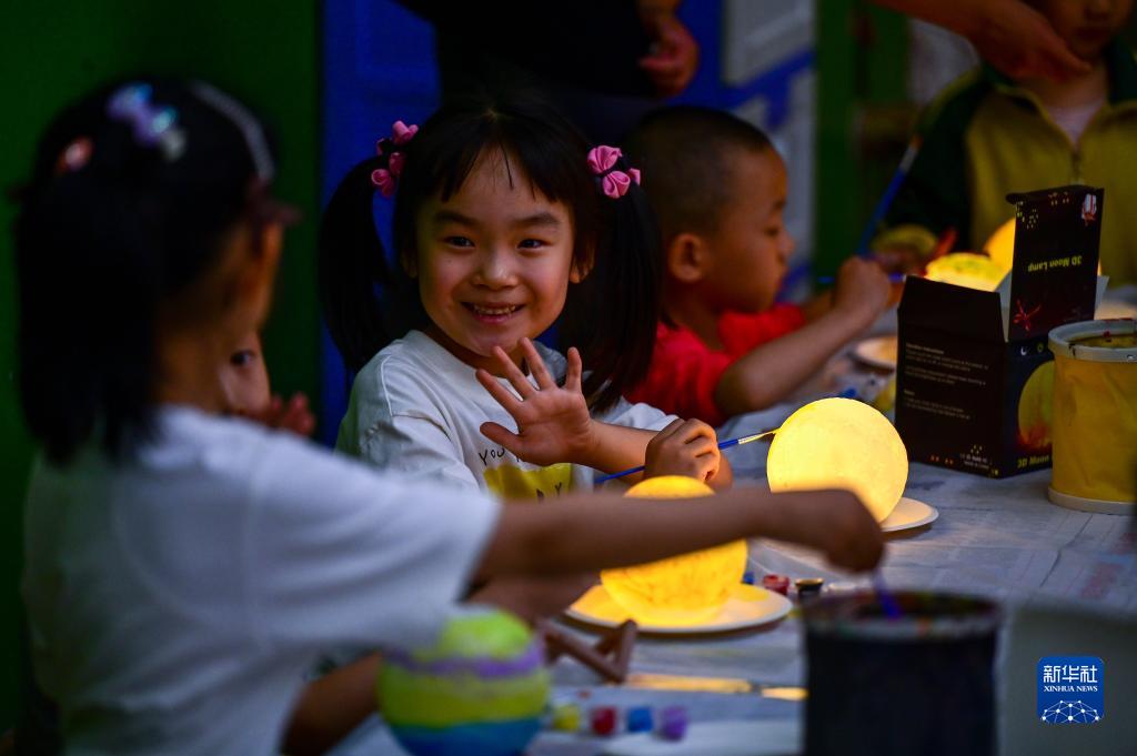 5月18日,小朋友在內(nèi)蒙古博物院“博物館之夜”活動(dòng)中做手工。