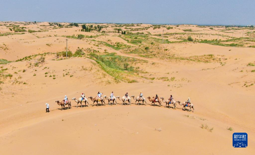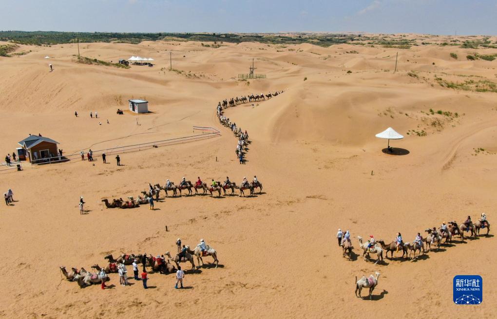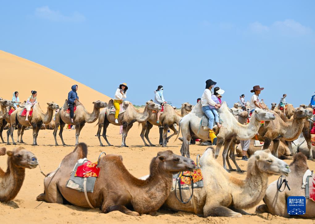 盛夏時(shí)節(jié),內(nèi)蒙古鄂爾多斯市達(dá)拉特旗境內(nèi)的庫布其沙漠游客絡(luò)繹不絕,沙漠旅游一派火熱。游客們?cè)陲栍[大漠美景的同時(shí),也體驗(yàn)騎駱駝、滑沙等項(xiàng)目的獨(dú)特魅力。