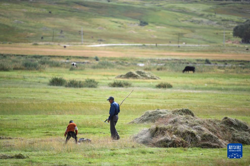 牧民在新疆塔什庫爾干塔吉克自治縣塔合曼鄉(xiāng)的草場上收割牧草(8月27日攝)。