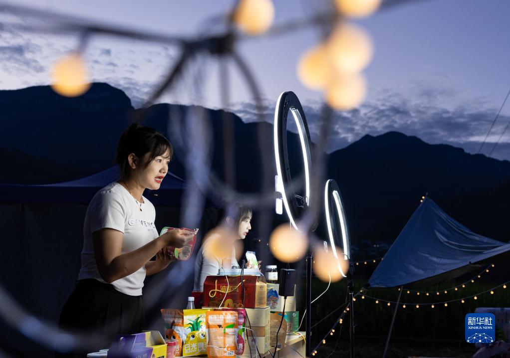9月2日,在鹽邊縣惠民鎮(zhèn)興隆村的豐收后的稻田里,兩位主播在直播推介當(dāng)?shù)剞r(nóng)特產(chǎn)品。