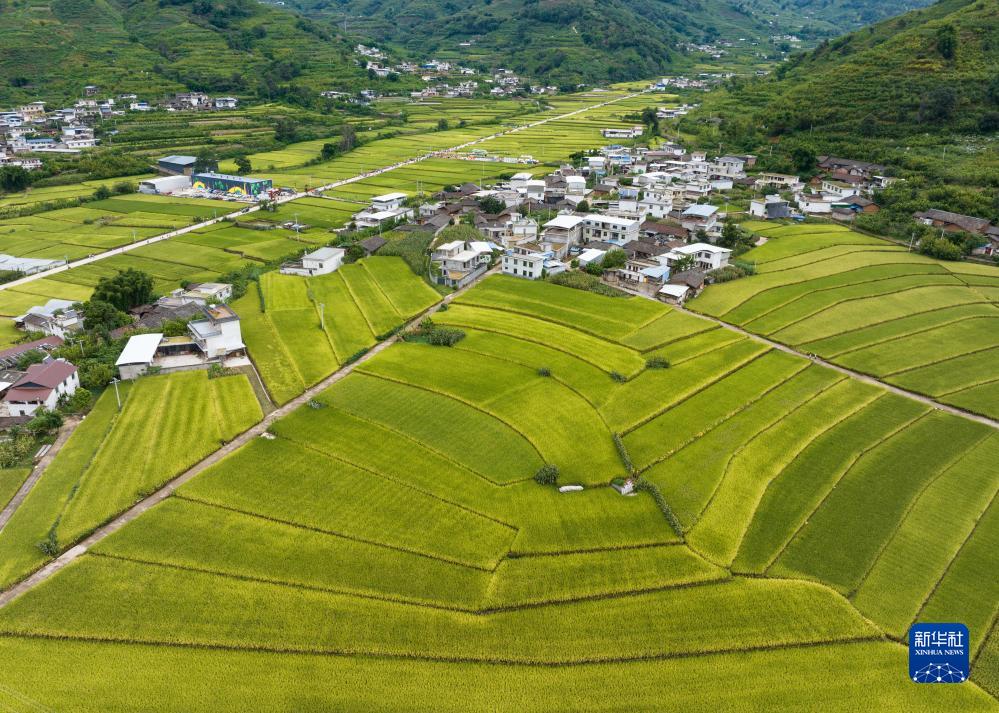 俯瞰鹽邊縣惠民鎮(zhèn)興隆村稻田(9月2日攝,無(wú)人機(jī)照片)。