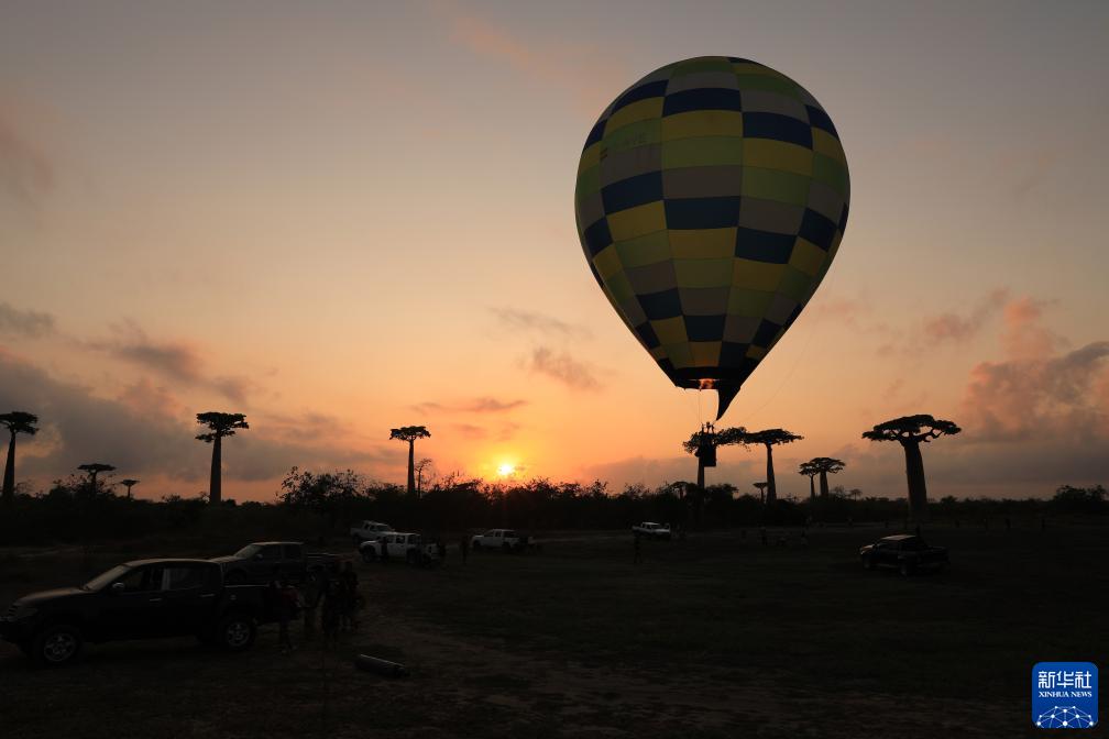 當日,在馬達加斯加穆龍達瓦猴面包樹大道,來自瑞士、法國等國的熱氣球旅行愛好者于日出時分乘坐熱氣球升空。猴面包樹與熱氣球構成了一道獨特的風景。