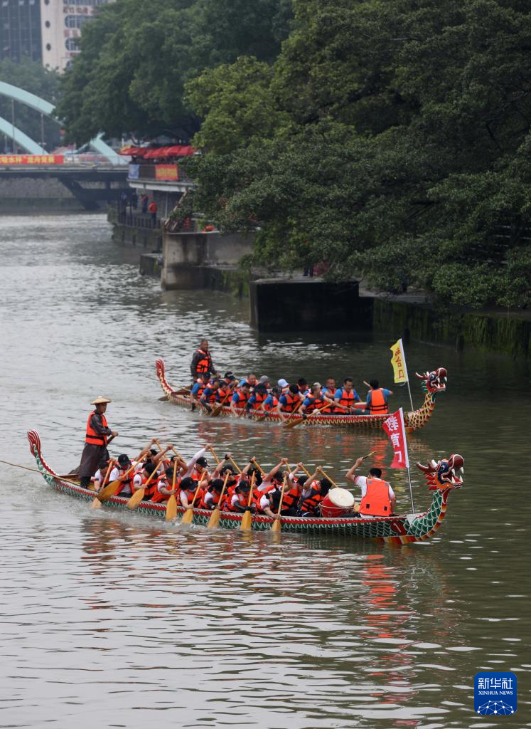 6月5日,龍舟隊員在福建省龍巖市龍津河參加龍舟競渡。