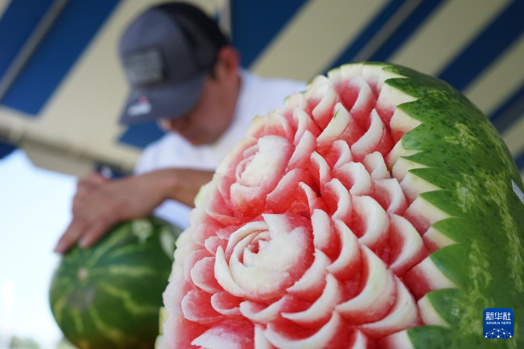 6月22日,一名男子在美國加利福尼亞州洛杉磯舉行的加州西瓜節(jié)上雕刻西瓜。