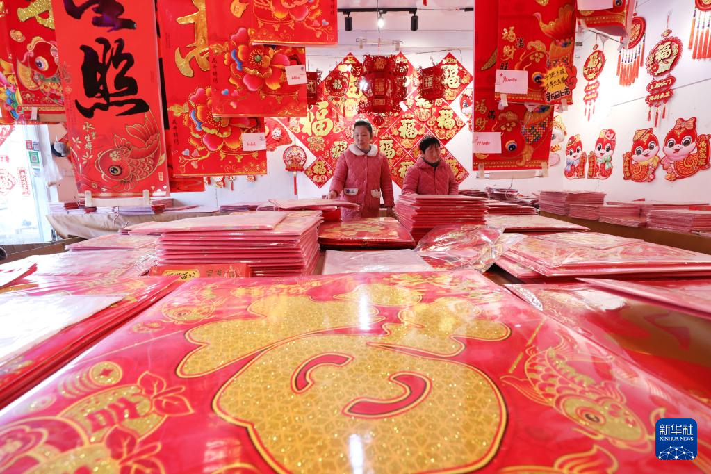 1月13日,顧客在河南省焦作市溫縣趙堡鎮(zhèn)年畫市場(chǎng)選購(gòu)新年飾品。