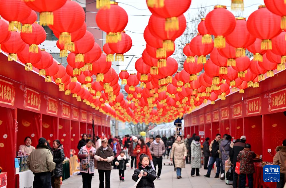 春節(jié)臨近,大街小巷張燈結(jié)彩,人們逛集市、購(gòu)年貨,參加各種迎新年活動(dòng)。