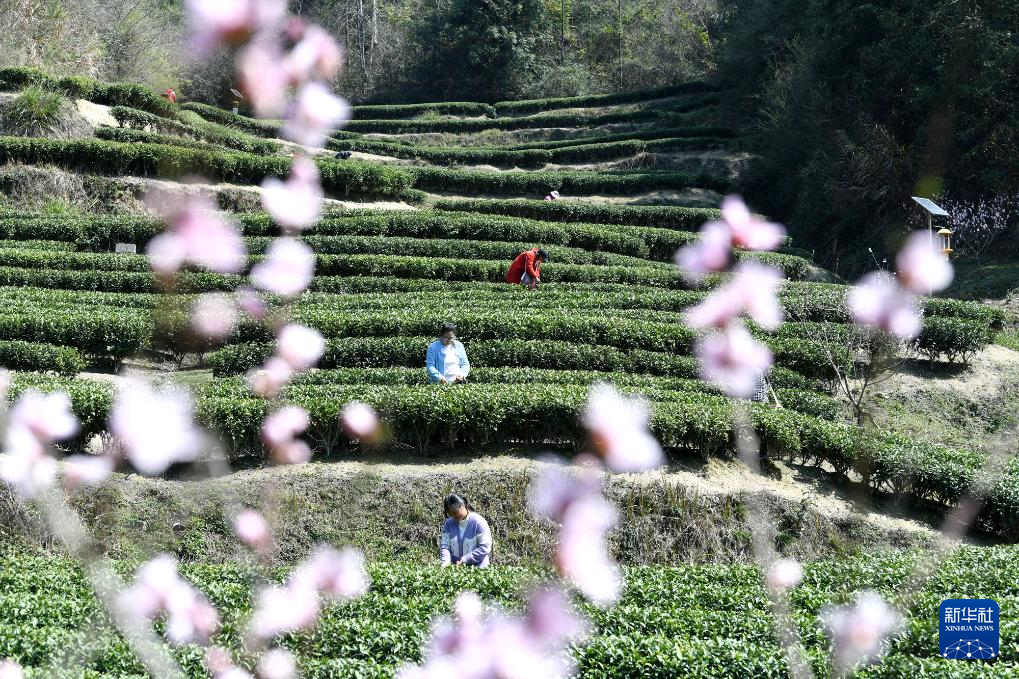 3月18日,茶農(nóng)在湖北省咸寧市通城縣四莊鄉(xiāng)寺背村臥龍溝生態(tài)有機(jī)茶業(yè)專業(yè)合作社采摘茶葉。