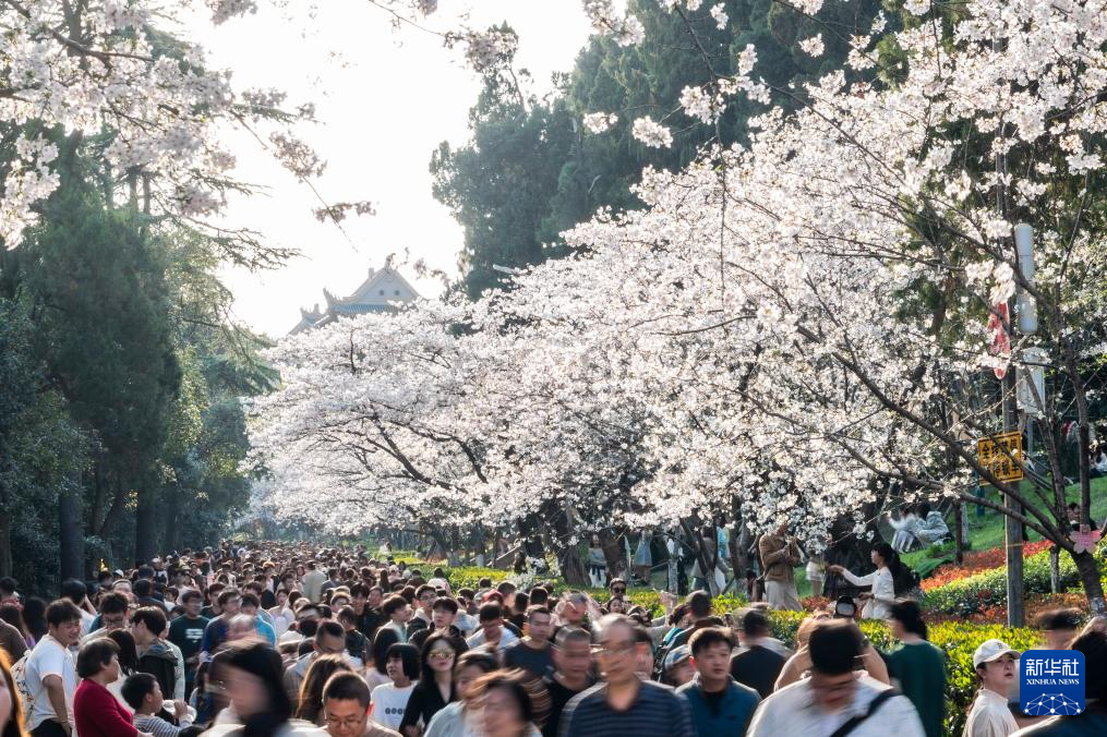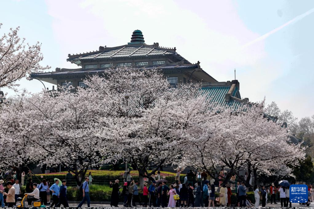 3月24日,游人在武漢大學(xué)校園內(nèi)觀賞櫻花。