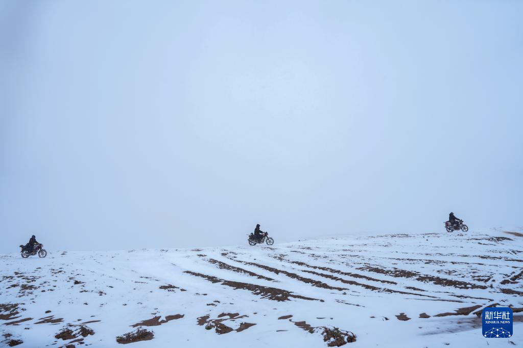 巡山隊(duì)員在可可西里卓乃湖附近巡護(hù)(7月3日攝)。