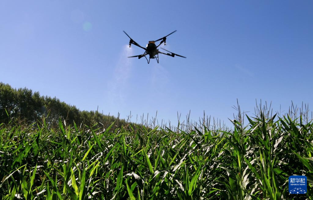8月7日,在北大荒集團(tuán)黑龍江格球山農(nóng)場(chǎng)有限公司第二管理區(qū),一架植保無(wú)人機(jī)為玉米噴施“營(yíng)養(yǎng)液”。