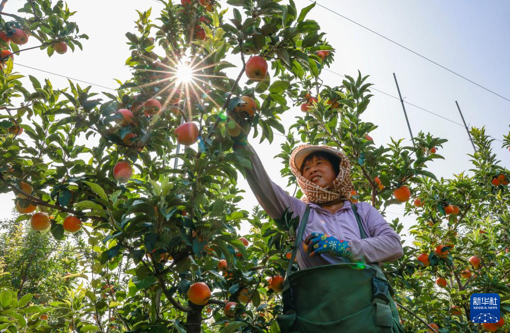 8月7日,果農(nóng)在山東省東營(yíng)市廣饒縣大王鎮(zhèn)的一處蘋果種植基地內(nèi)采摘蘋果。