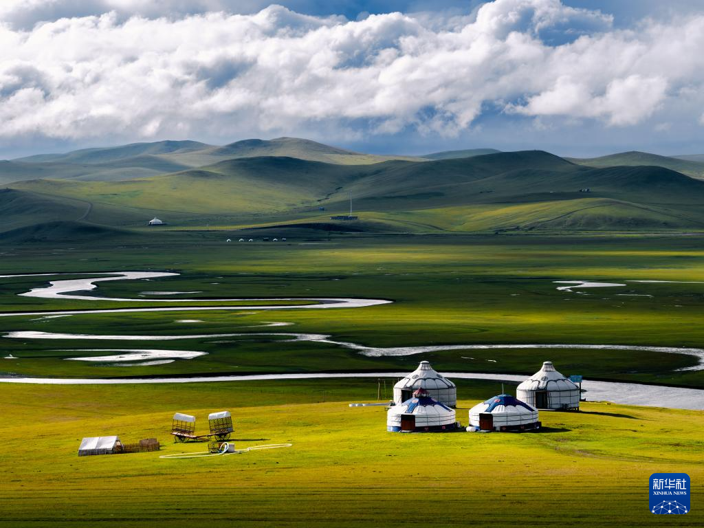 9月14日拍攝的內(nèi)蒙古呼倫貝爾市陳巴爾虎旗草原上的莫爾格勒河(無(wú)人機(jī)照片)。